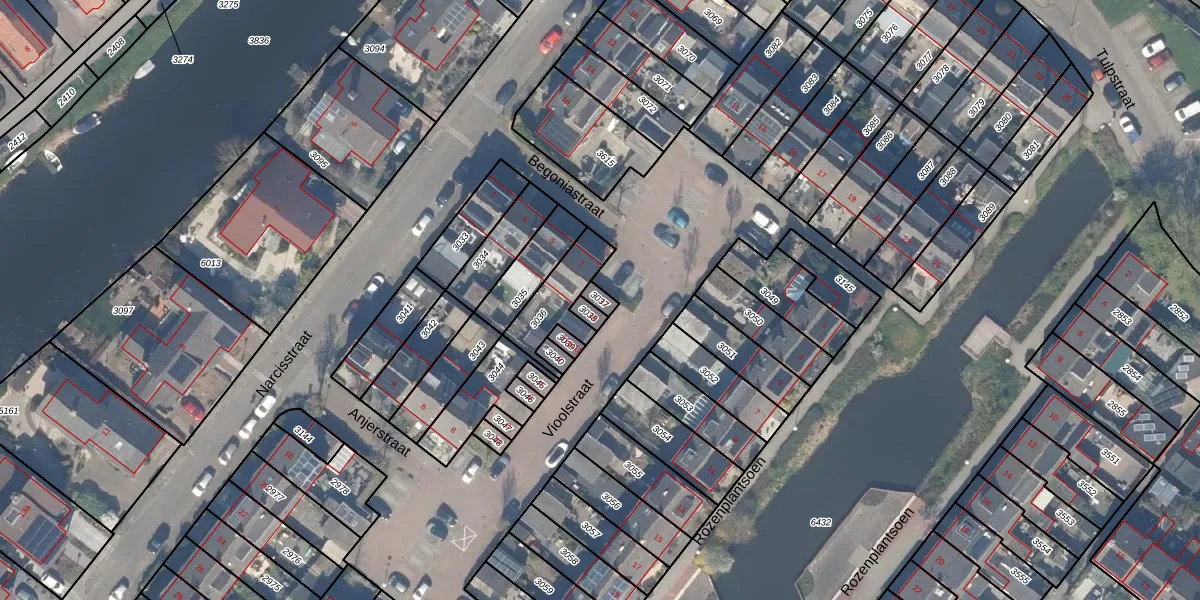 Gebruik de zoekbalk of klik op een perceel om informatie over het perceel te bekijken.