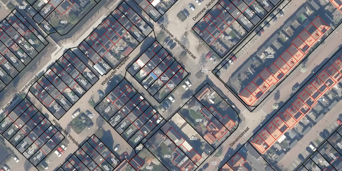 Gebruik de zoekbalk of klik op een perceel om informatie over het perceel te bekijken.
