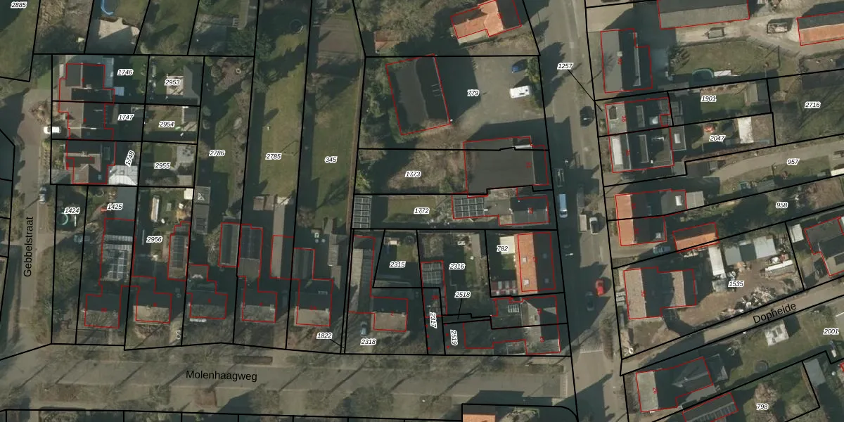 Gebruik de zoekbalk of klik op een perceel om informatie over het perceel te bekijken.