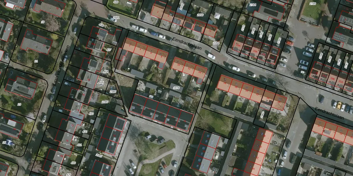 Gebruik de zoekbalk of klik op een perceel om informatie over het perceel te bekijken.