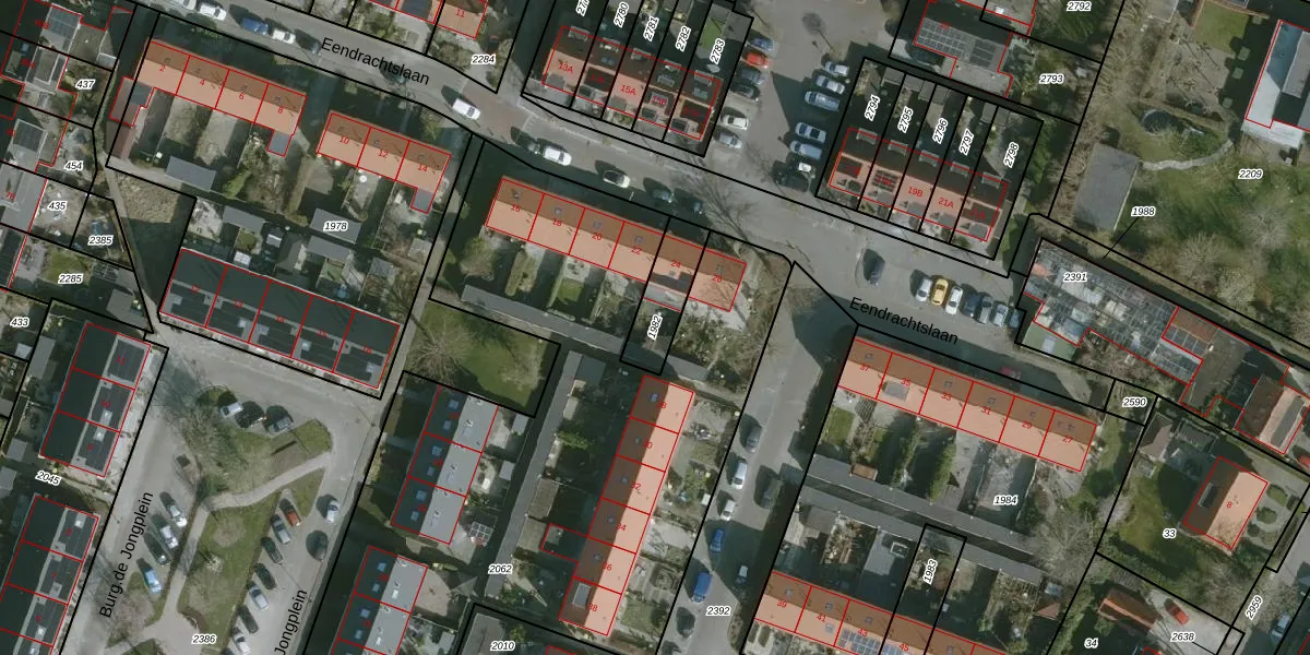 Gebruik de zoekbalk of klik op een perceel om informatie over het perceel te bekijken.