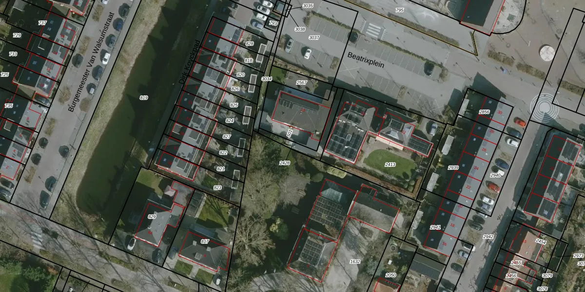 Gebruik de zoekbalk of klik op een perceel om informatie over het perceel te bekijken.