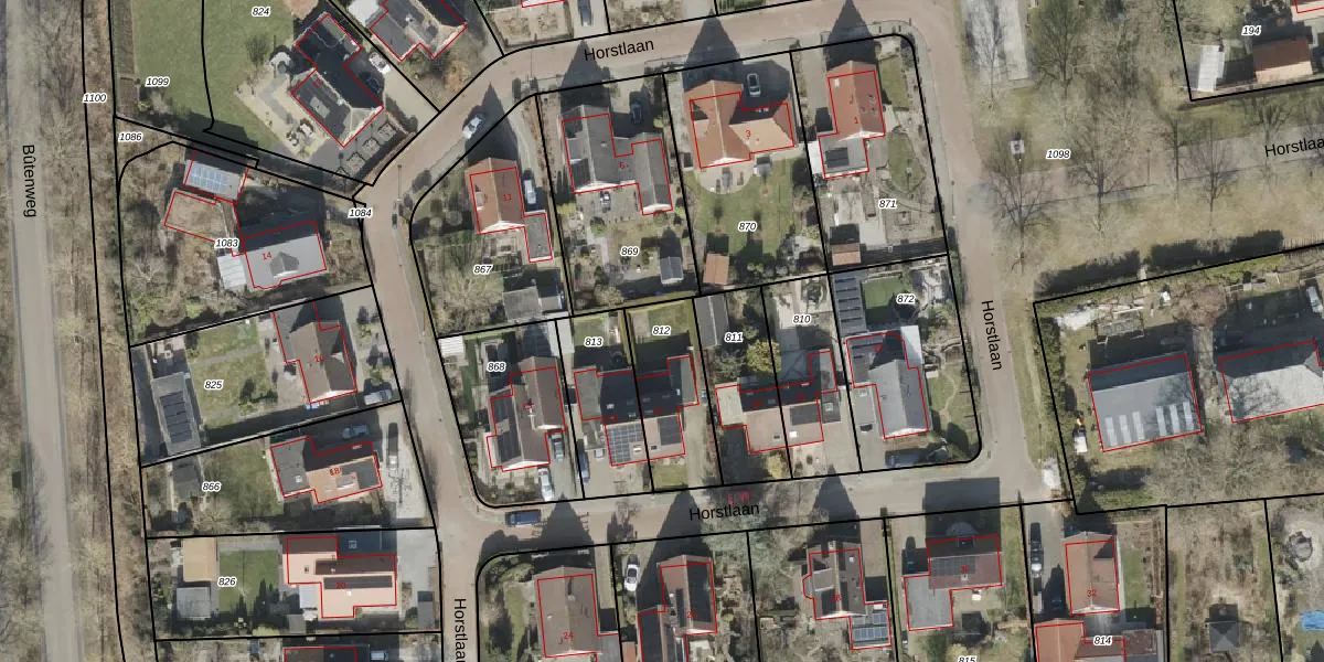 Gebruik de zoekbalk of klik op een perceel om informatie over het perceel te bekijken.