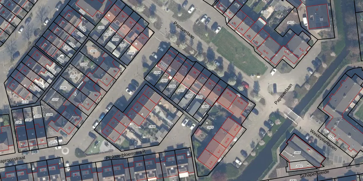 Gebruik de zoekbalk of klik op een perceel om informatie over het perceel te bekijken.