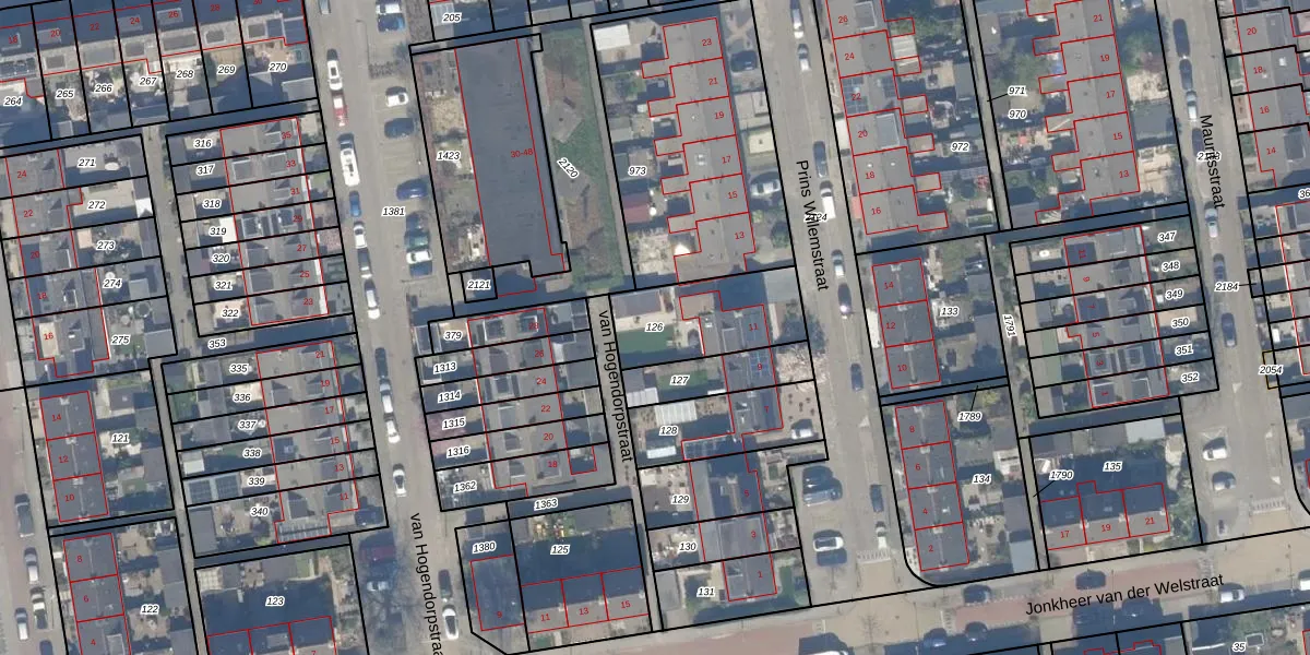 Gebruik de zoekbalk of klik op een perceel om informatie over het perceel te bekijken.