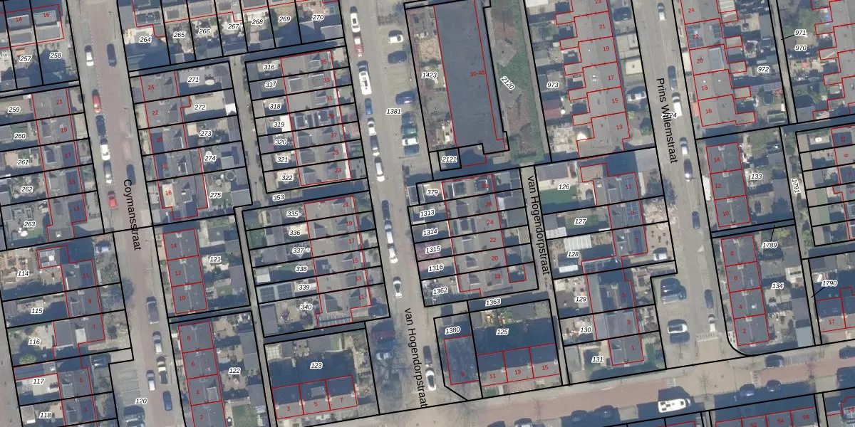 Gebruik de zoekbalk of klik op een perceel om informatie over het perceel te bekijken.