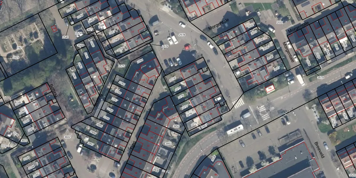 Gebruik de zoekbalk of klik op een perceel om informatie over het perceel te bekijken.