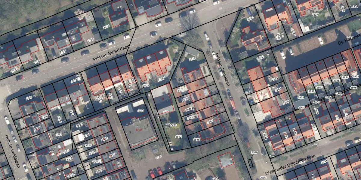 Gebruik de zoekbalk of klik op een perceel om informatie over het perceel te bekijken.