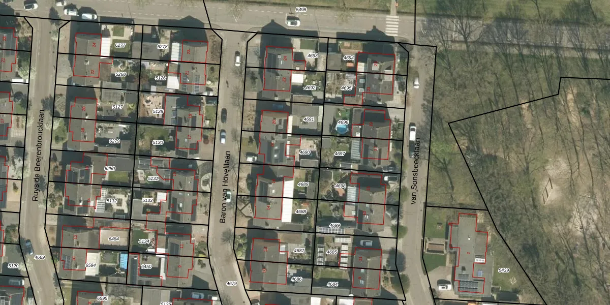 Gebruik de zoekbalk of klik op een perceel om informatie over het perceel te bekijken.