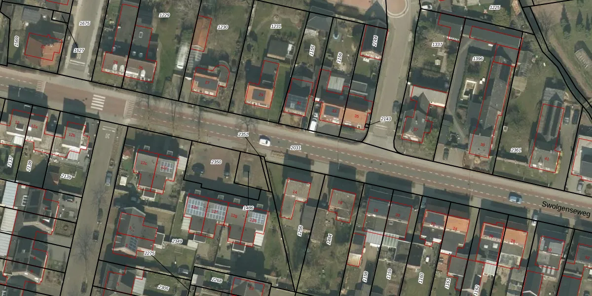 Gebruik de zoekbalk of klik op een perceel om informatie over het perceel te bekijken.