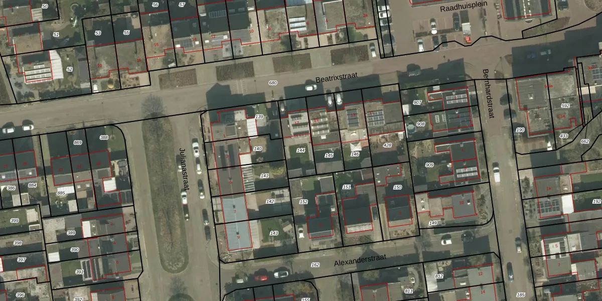 Gebruik de zoekbalk of klik op een perceel om informatie over het perceel te bekijken.