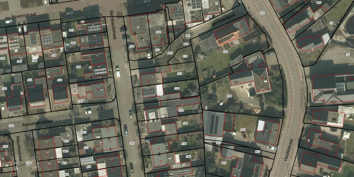 Gebruik de zoekbalk of klik op een perceel om informatie over het perceel te bekijken.