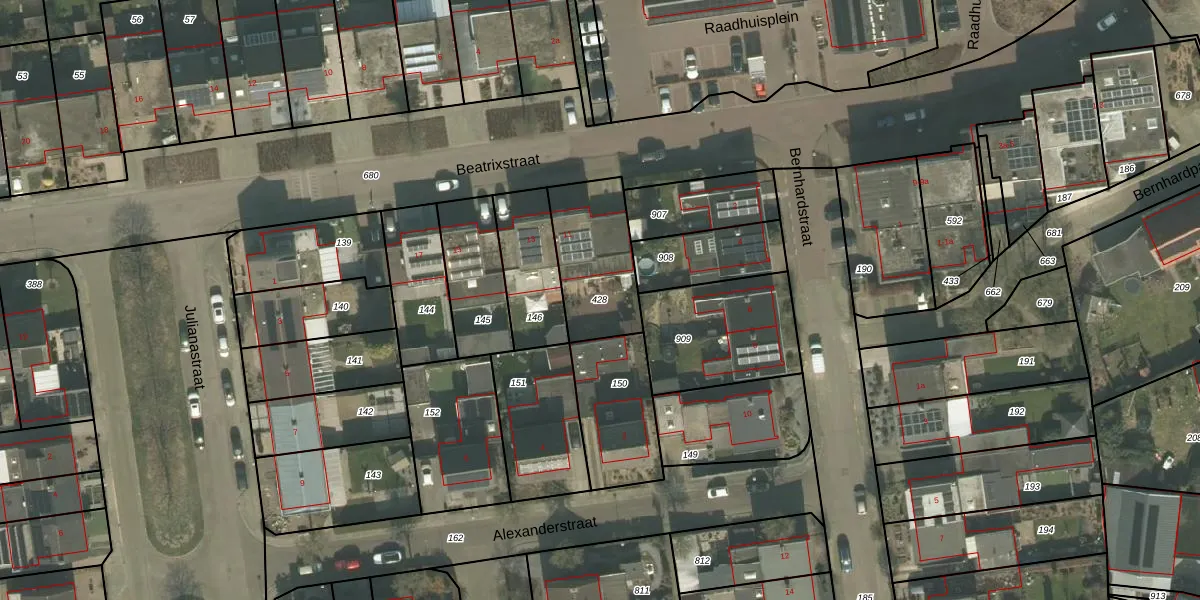 Gebruik de zoekbalk of klik op een perceel om informatie over het perceel te bekijken.