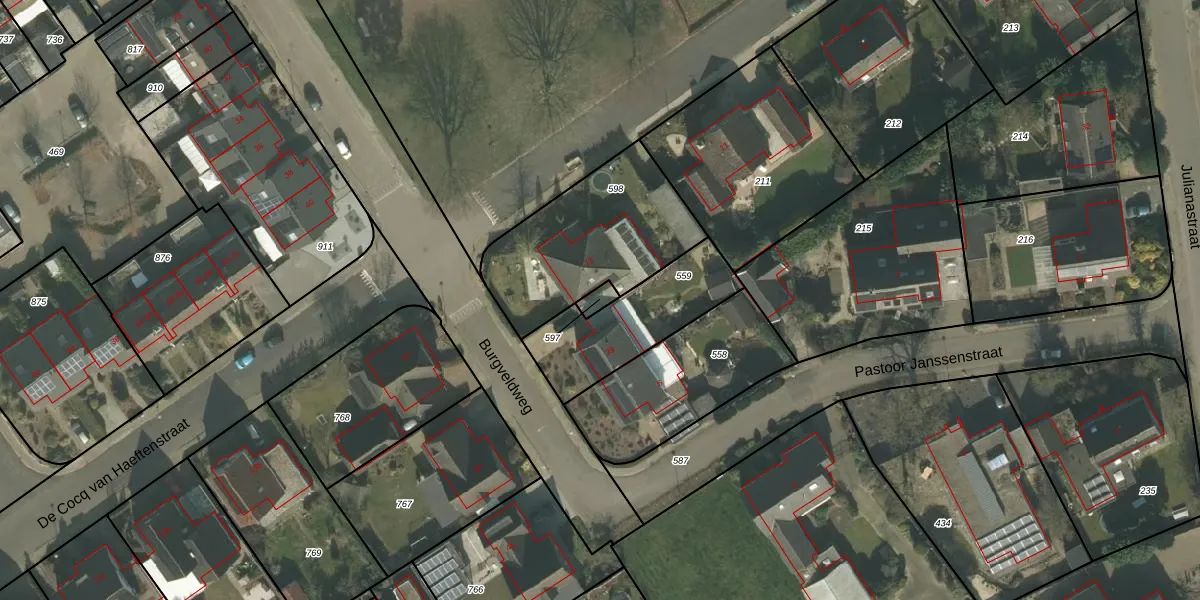 Gebruik de zoekbalk of klik op een perceel om informatie over het perceel te bekijken.