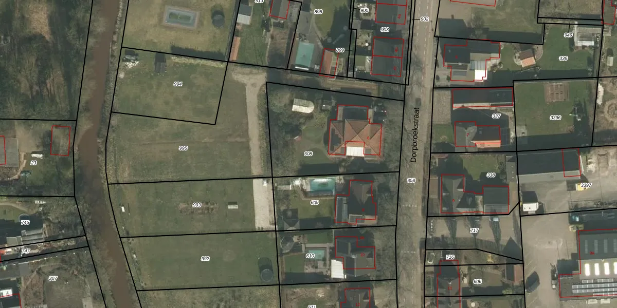 Gebruik de zoekbalk of klik op een perceel om informatie over het perceel te bekijken.