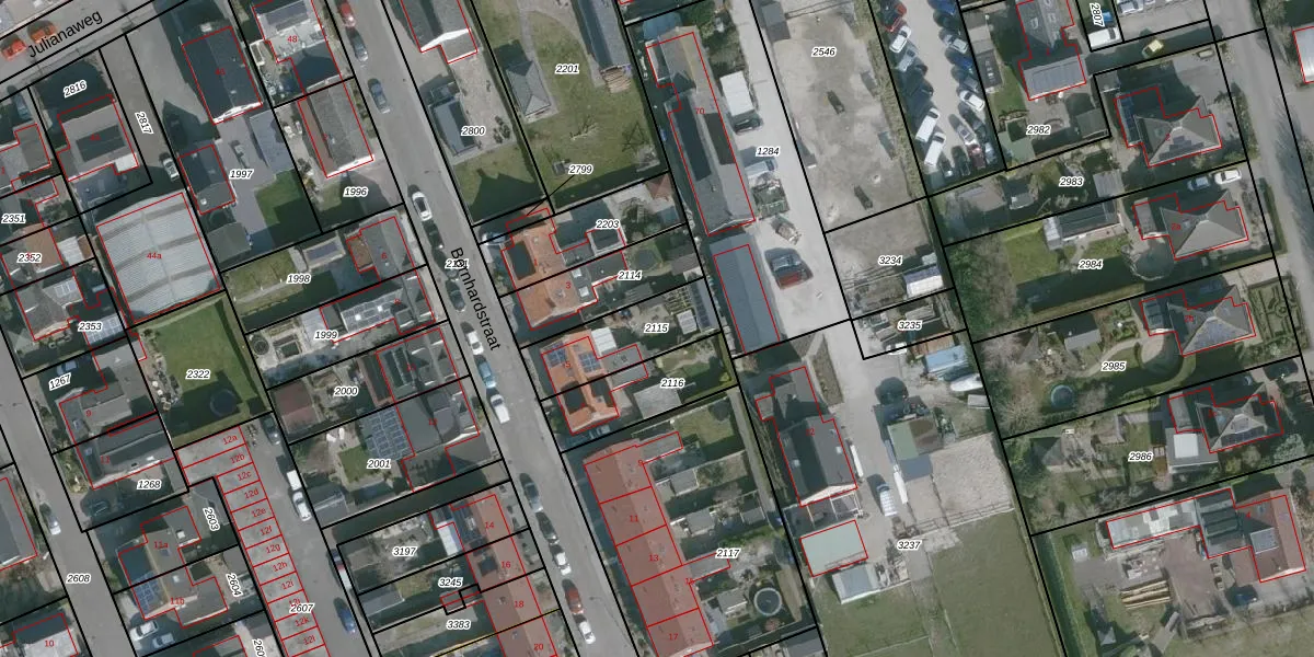 Gebruik de zoekbalk of klik op een perceel om informatie over het perceel te bekijken.