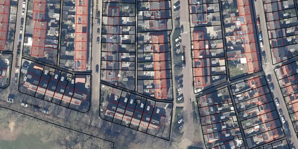 Gebruik de zoekbalk of klik op een perceel om informatie over het perceel te bekijken.