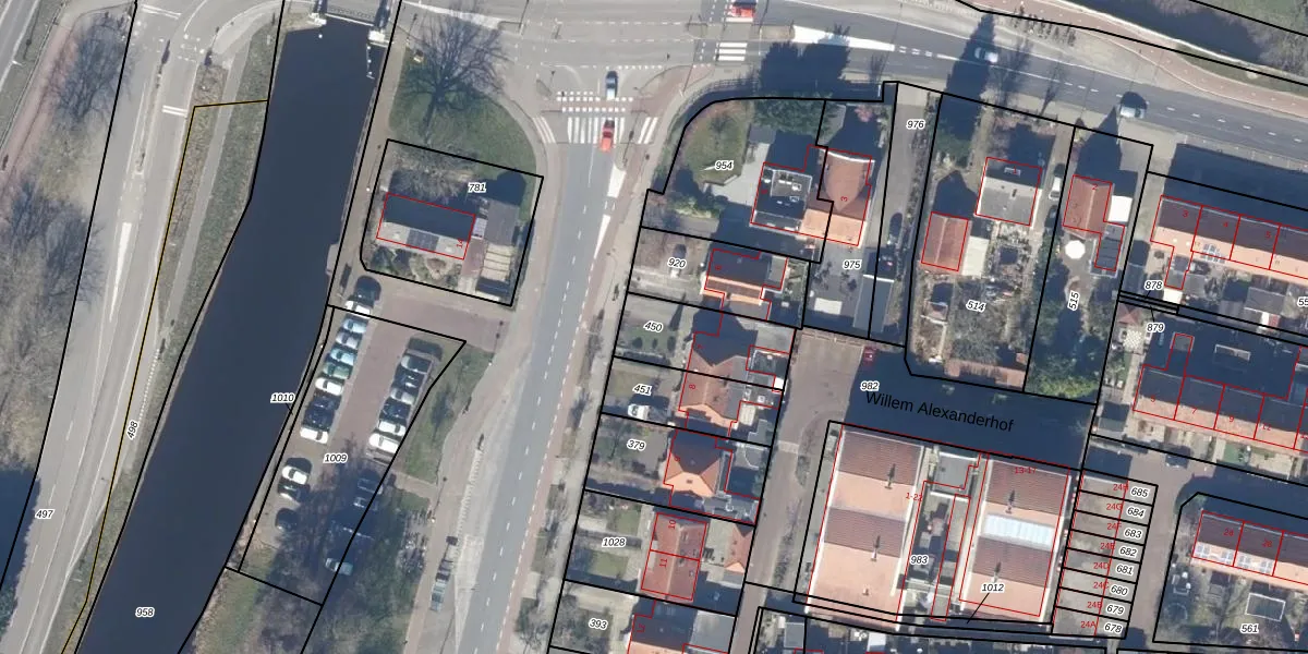 Gebruik de zoekbalk of klik op een perceel om informatie over het perceel te bekijken.