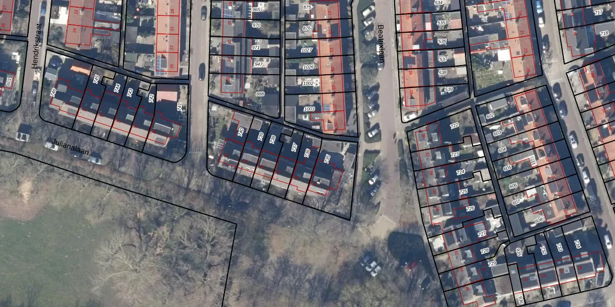 Gebruik de zoekbalk of klik op een perceel om informatie over het perceel te bekijken.