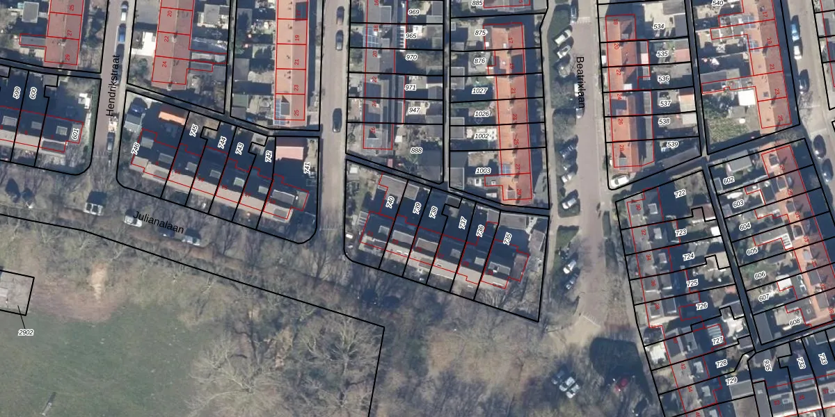 Gebruik de zoekbalk of klik op een perceel om informatie over het perceel te bekijken.