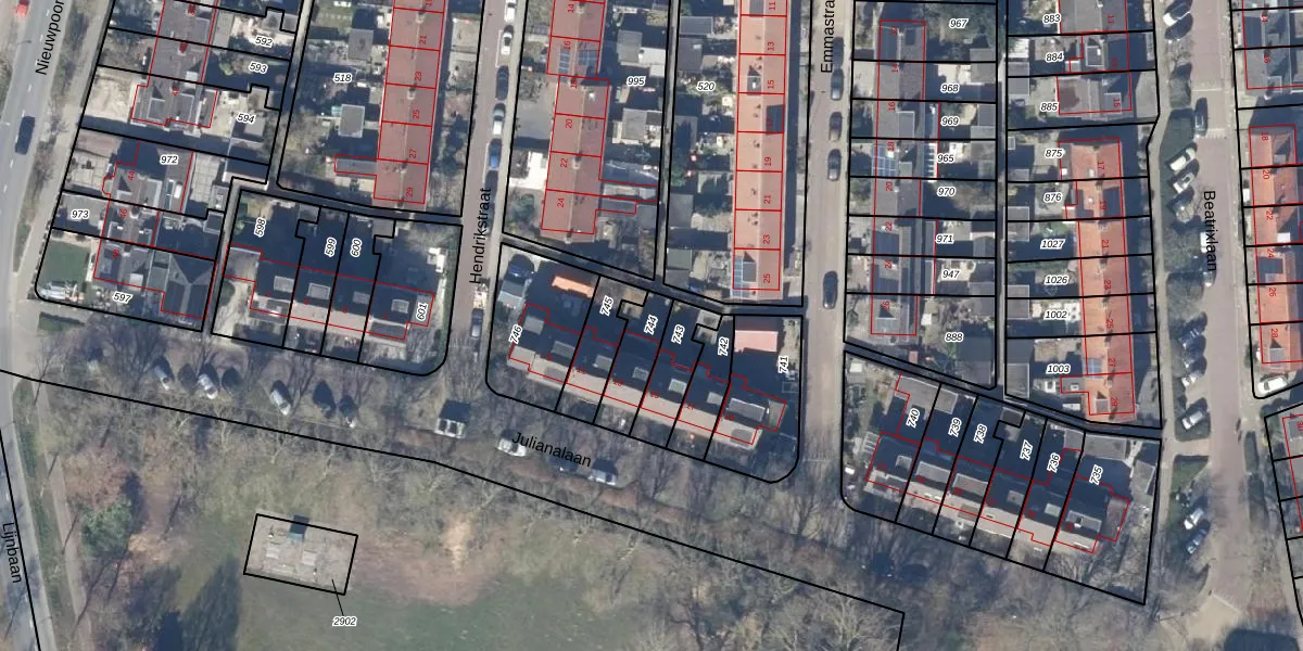 Gebruik de zoekbalk of klik op een perceel om informatie over het perceel te bekijken.