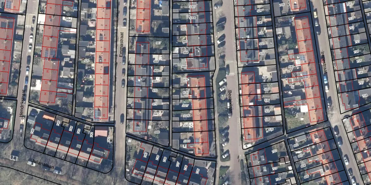 Gebruik de zoekbalk of klik op een perceel om informatie over het perceel te bekijken.