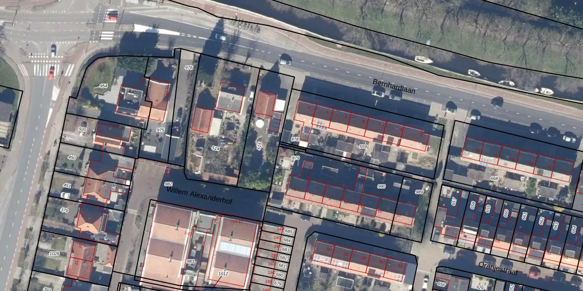 Gebruik de zoekbalk of klik op een perceel om informatie over het perceel te bekijken.