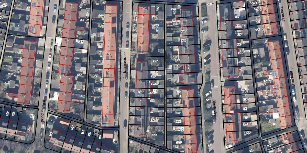 Gebruik de zoekbalk of klik op een perceel om informatie over het perceel te bekijken.