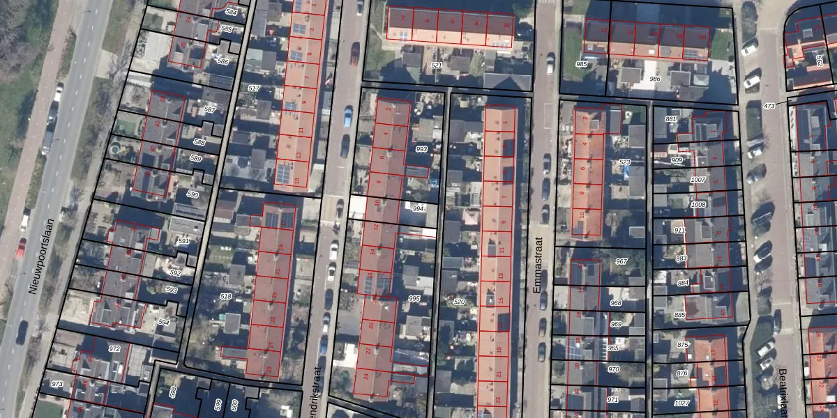 Gebruik de zoekbalk of klik op een perceel om informatie over het perceel te bekijken.