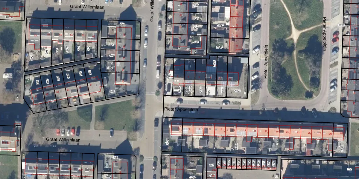 Gebruik de zoekbalk of klik op een perceel om informatie over het perceel te bekijken.
