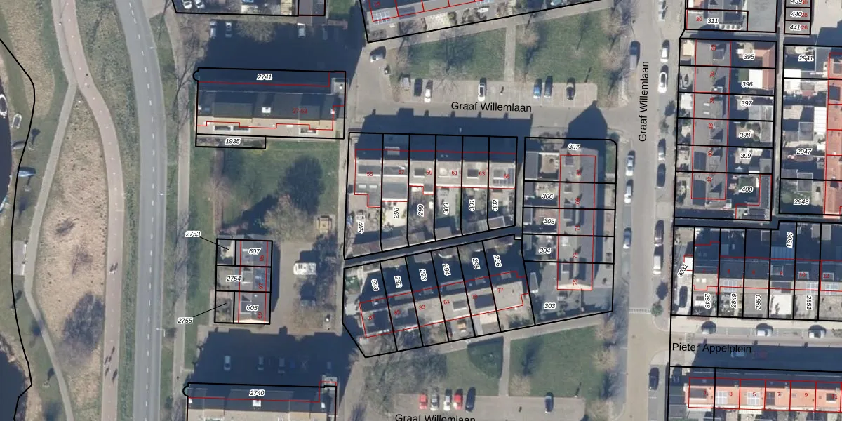 Gebruik de zoekbalk of klik op een perceel om informatie over het perceel te bekijken.