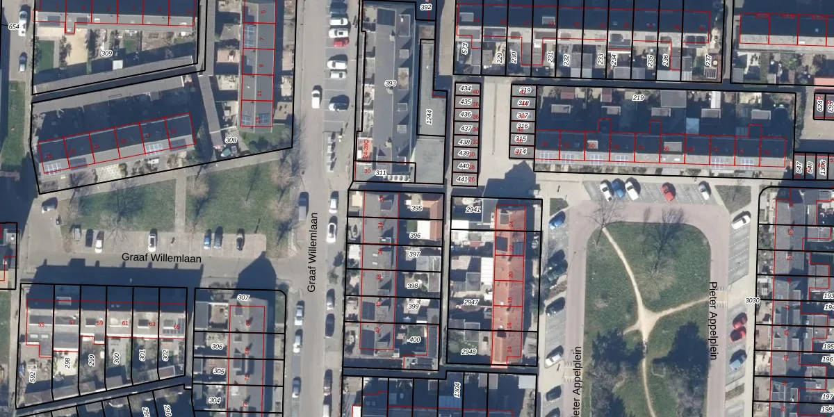 Gebruik de zoekbalk of klik op een perceel om informatie over het perceel te bekijken.