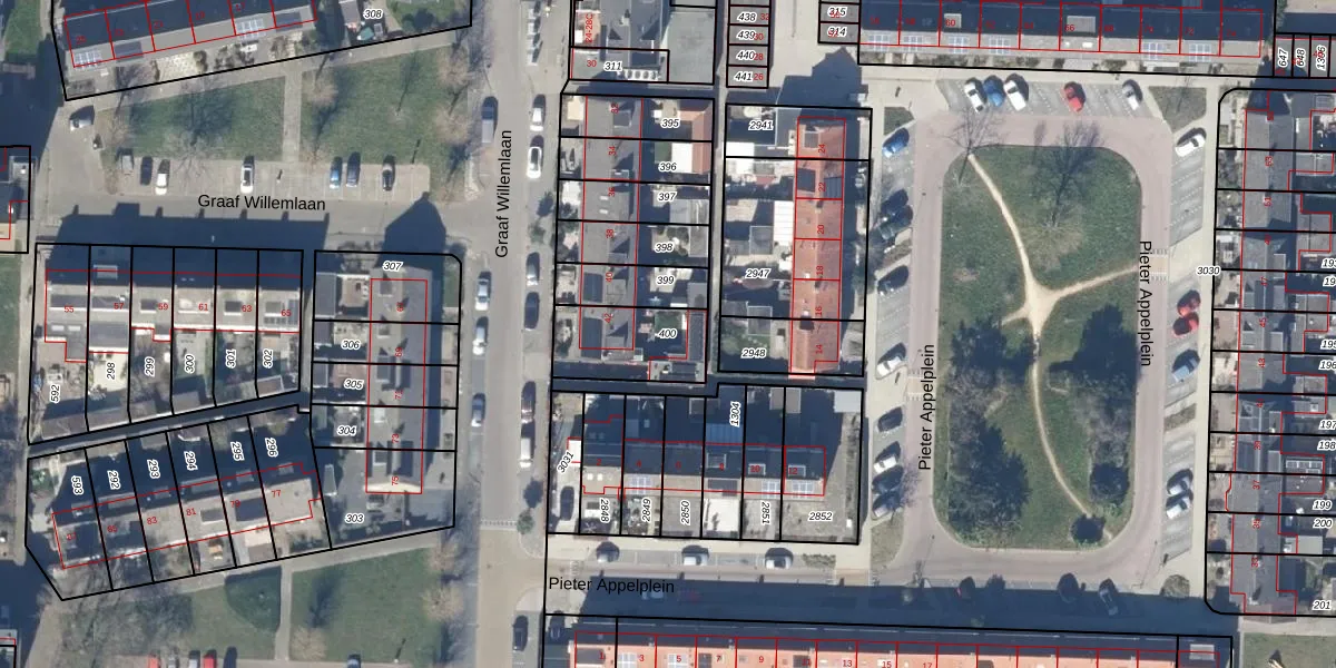 Gebruik de zoekbalk of klik op een perceel om informatie over het perceel te bekijken.