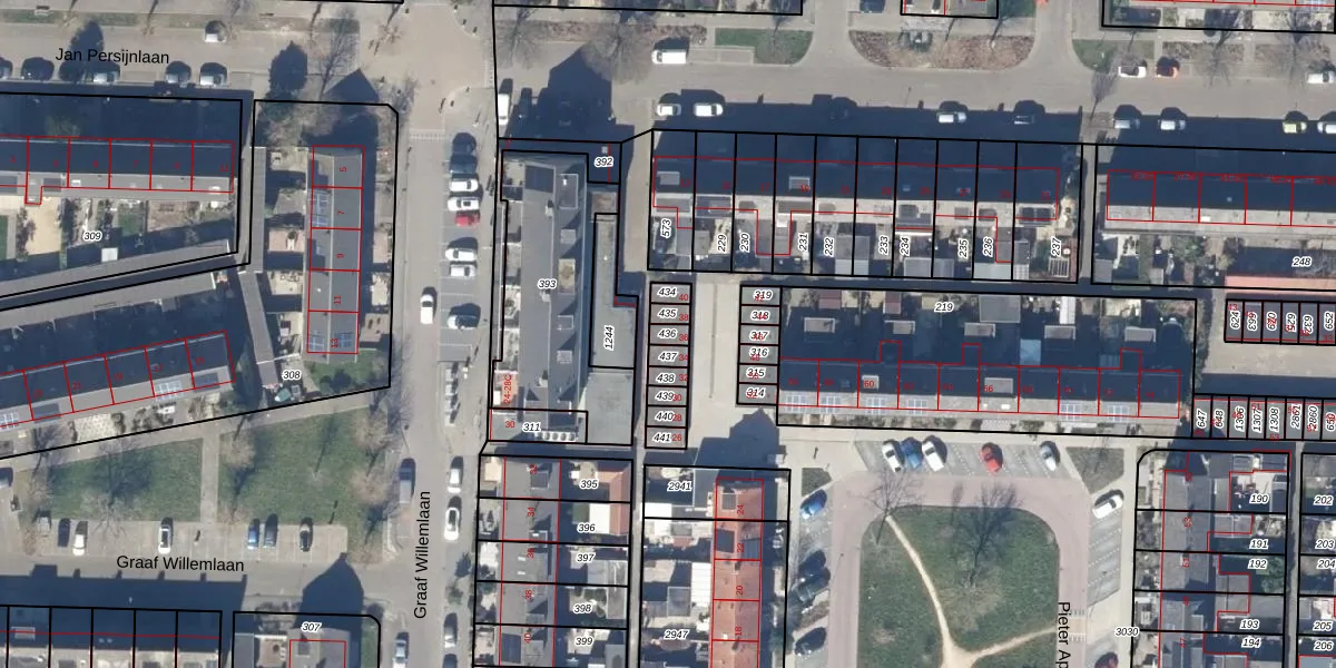 Gebruik de zoekbalk of klik op een perceel om informatie over het perceel te bekijken.