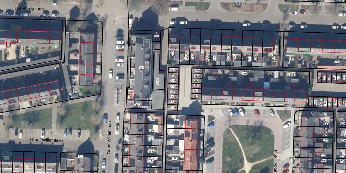 Gebruik de zoekbalk of klik op een perceel om informatie over het perceel te bekijken.