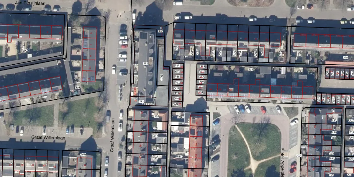 Gebruik de zoekbalk of klik op een perceel om informatie over het perceel te bekijken.