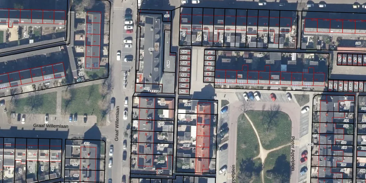 Gebruik de zoekbalk of klik op een perceel om informatie over het perceel te bekijken.