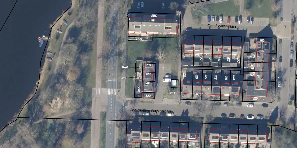 Gebruik de zoekbalk of klik op een perceel om informatie over het perceel te bekijken.
