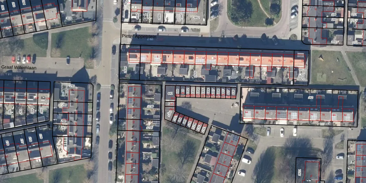 Gebruik de zoekbalk of klik op een perceel om informatie over het perceel te bekijken.