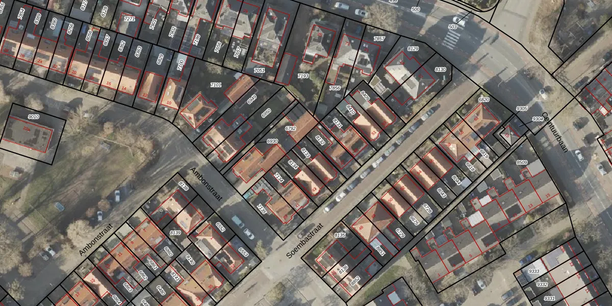Gebruik de zoekbalk of klik op een perceel om informatie over het perceel te bekijken.