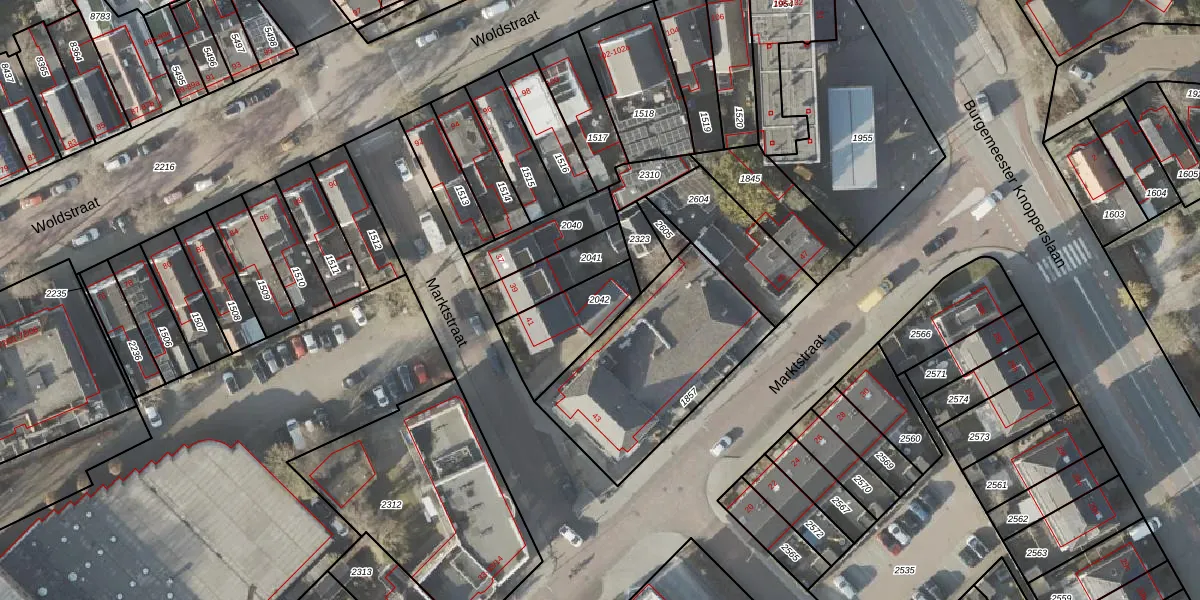 Gebruik de zoekbalk of klik op een perceel om informatie over het perceel te bekijken.