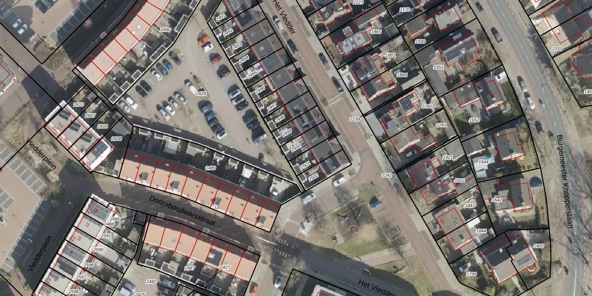 Gebruik de zoekbalk of klik op een perceel om informatie over het perceel te bekijken.