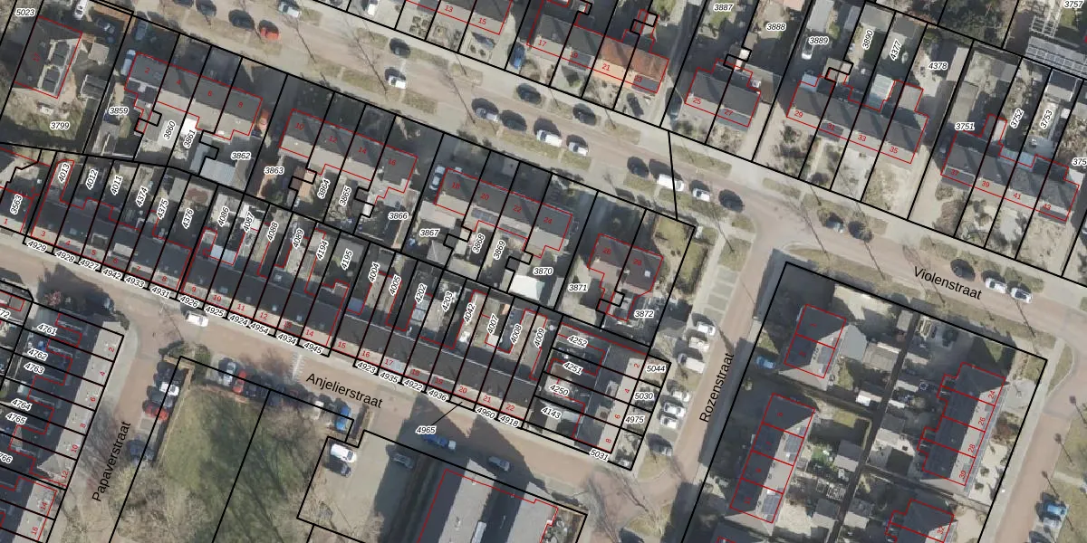 Gebruik de zoekbalk of klik op een perceel om informatie over het perceel te bekijken.