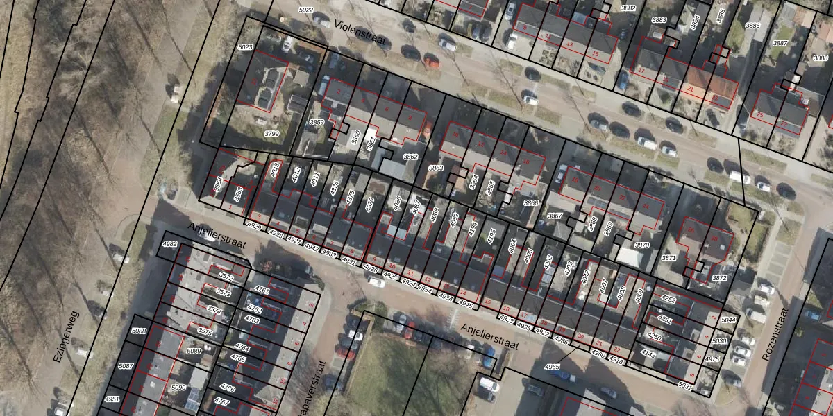 Gebruik de zoekbalk of klik op een perceel om informatie over het perceel te bekijken.