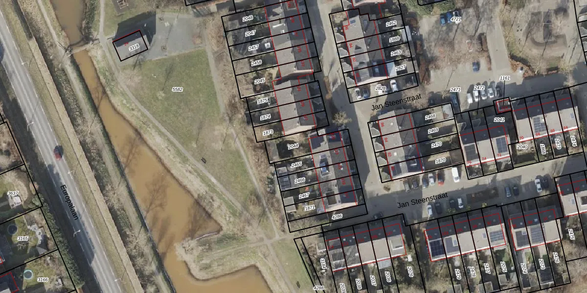Gebruik de zoekbalk of klik op een perceel om informatie over het perceel te bekijken.