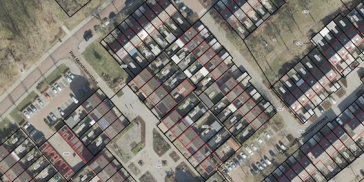 Gebruik de zoekbalk of klik op een perceel om informatie over het perceel te bekijken.