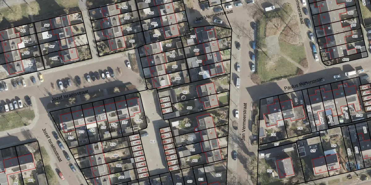 Gebruik de zoekbalk of klik op een perceel om informatie over het perceel te bekijken.