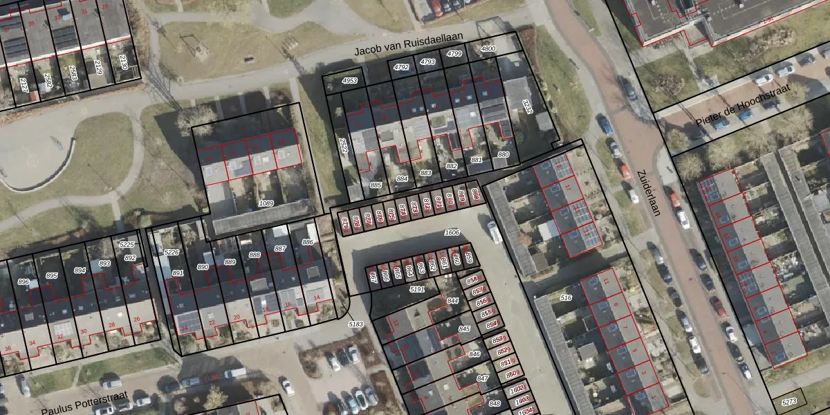 Gebruik de zoekbalk of klik op een perceel om informatie over het perceel te bekijken.