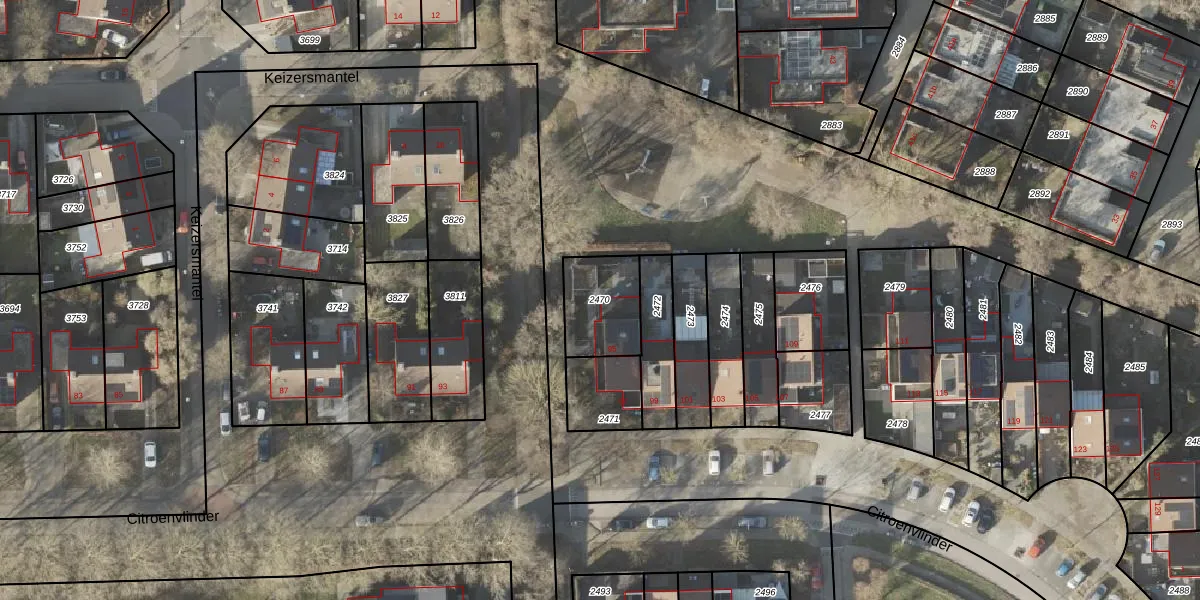 Gebruik de zoekbalk of klik op een perceel om informatie over het perceel te bekijken.