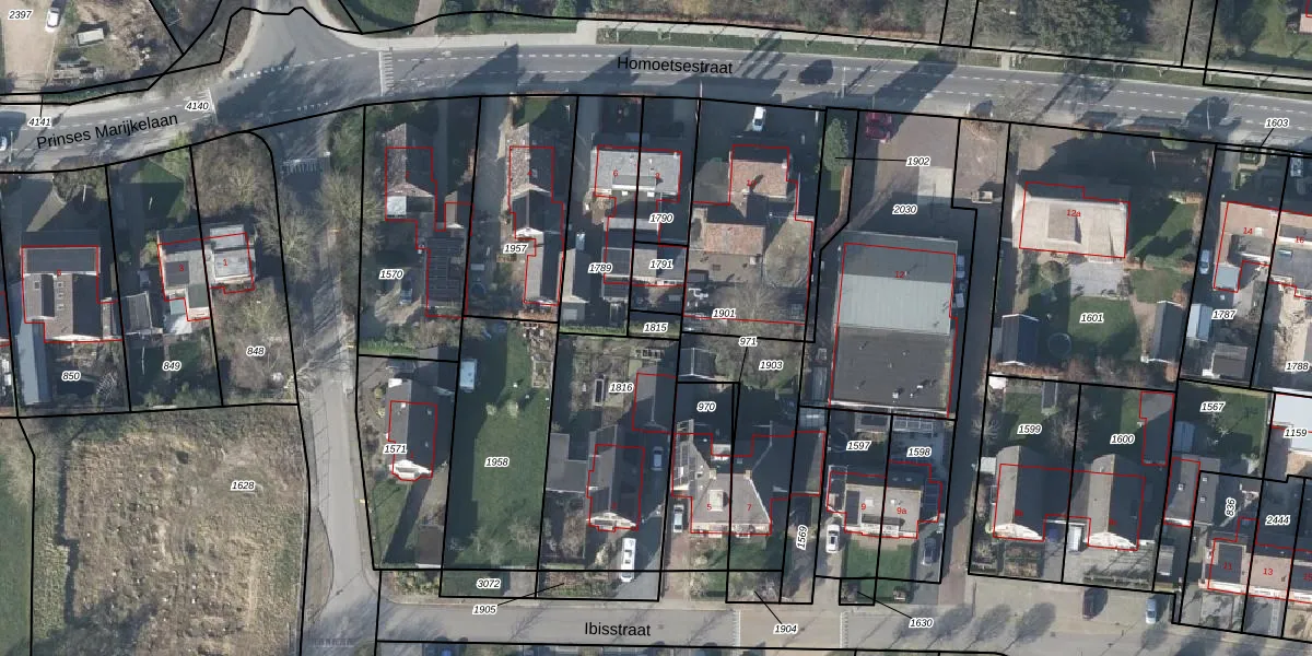 Gebruik de zoekbalk of klik op een perceel om informatie over het perceel te bekijken.